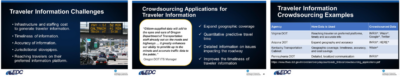 Traveler Information Slides_v2 Aug 29, 2023 Mr. Cowan explained how crowdsourcing applications are being used to support traveler information and shared innovative examples being tried in select states, including New Jersey.
