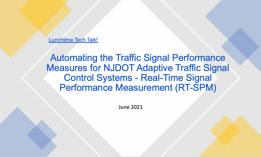 Slide Cover Reading Lunchtime Tech Talk! Automating the Traffic Signal Performance Measures for NJDOT Adaptive Traffic Signal Control Systems - Real-Time Signal Performance Measurement (RT-SPM)