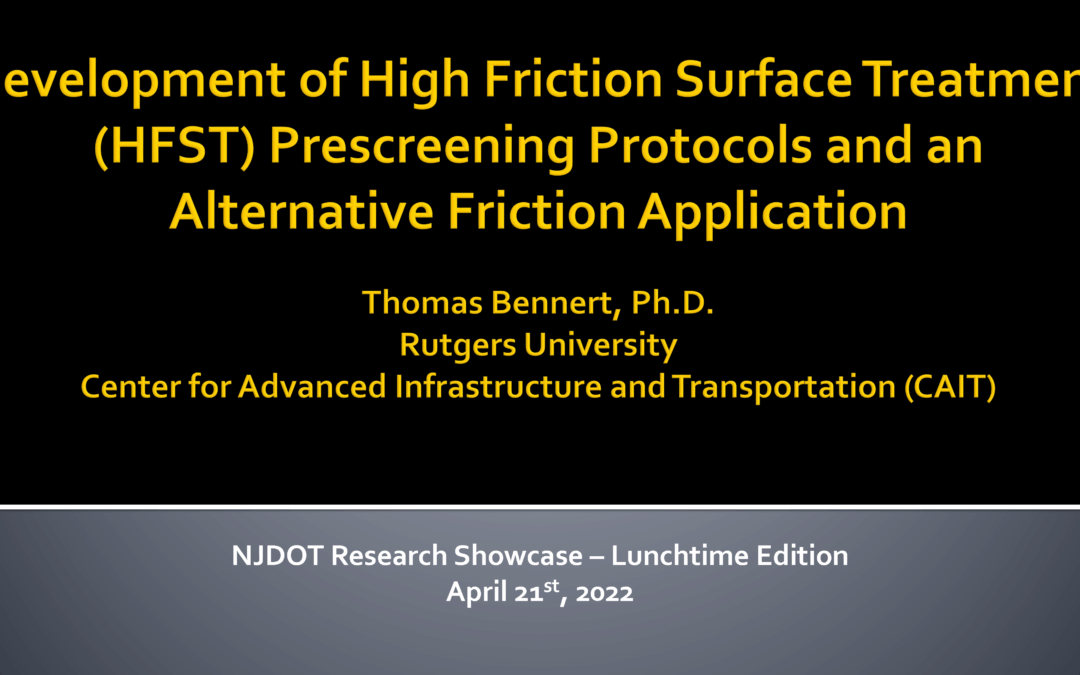 NJDOT Lunchtime – HFST Screening Tools & High Friction Chip Seal – Bennert