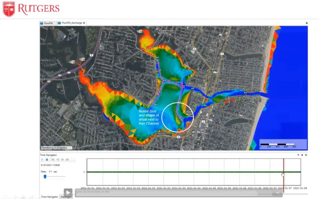 Dr. Miskewitz shared examples of the model’s visualizations of accretion and changes in shoals over time.