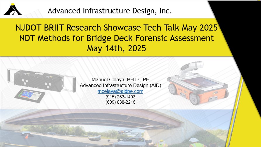 Presentation #3 – Forensic Investigation of Bridge Backwall Structure Using Ultrasonic and GPR Techniques by Manuel Celaya, PhD, PE, Advance Infrastructure Design, Inc.