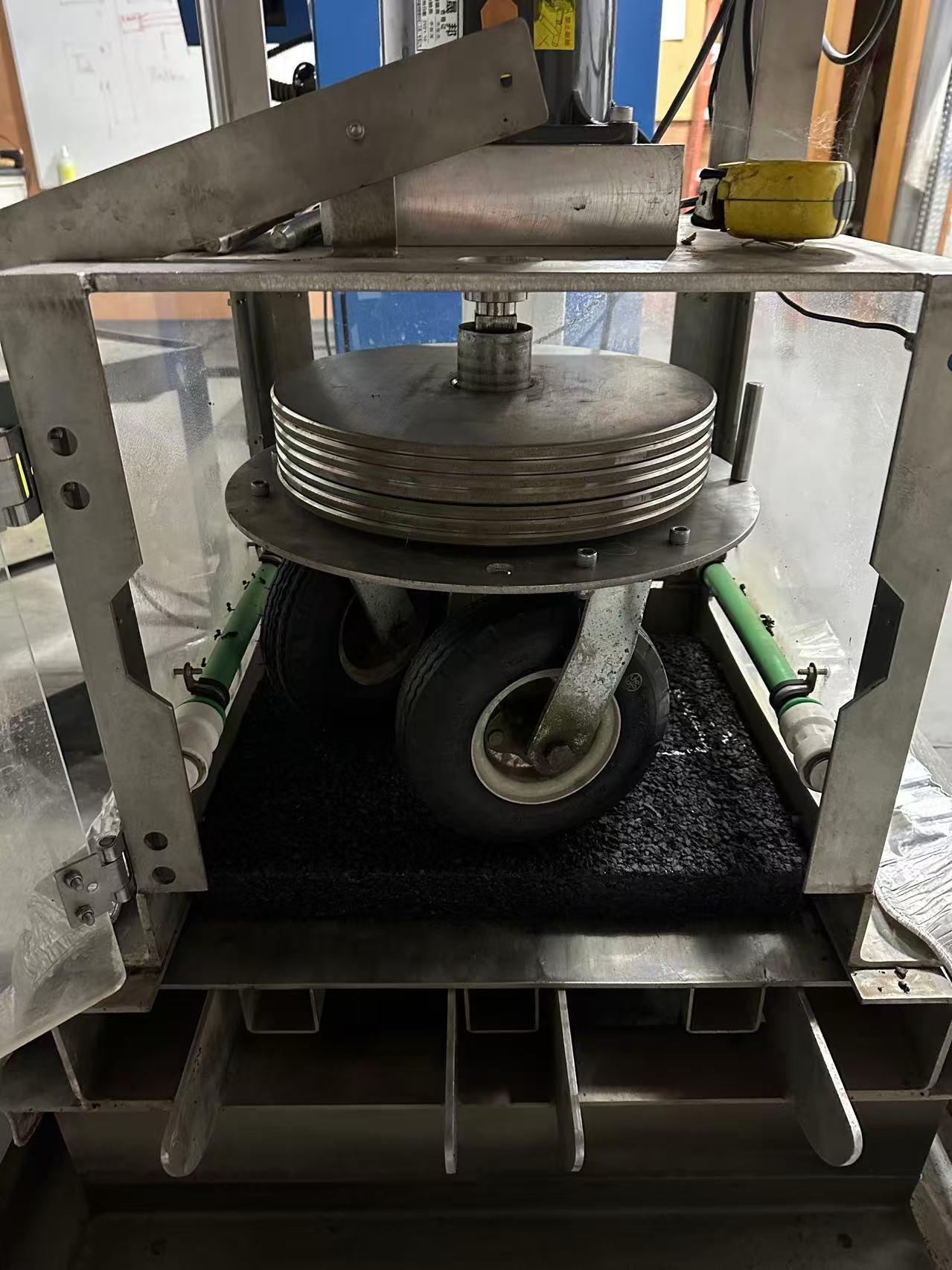 In the lab, we prepared numerous asphalt mixtures with different aggregates and material types. Then, we used an accelerated polishing machine to simulate tire wear over time for up to 50,000 cycles. Afterward, we measured the surface texture and friction to analyze how texture deterioration affects skid resistance. In the field, we conducted a survey using a high-resolution profiler to test the pavement surface texture and the friction. By comparing the lab and the field data, we aim to establish a correlation between the pavement surface texture and friction performance.